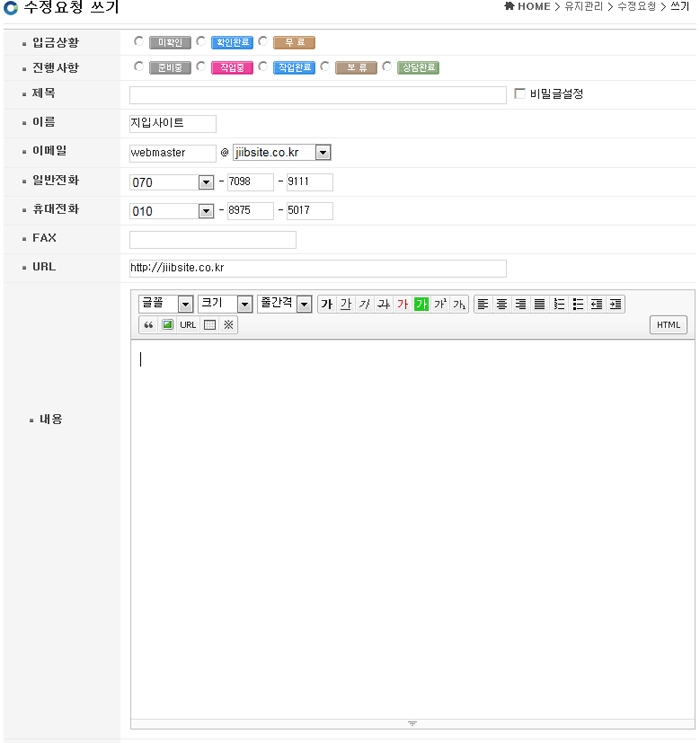 4. 아래의 그림처럼 지입사이트(jiibsite.co.kr) 사이트에 수정요청할수있는 곳으로 이동됩니다.
