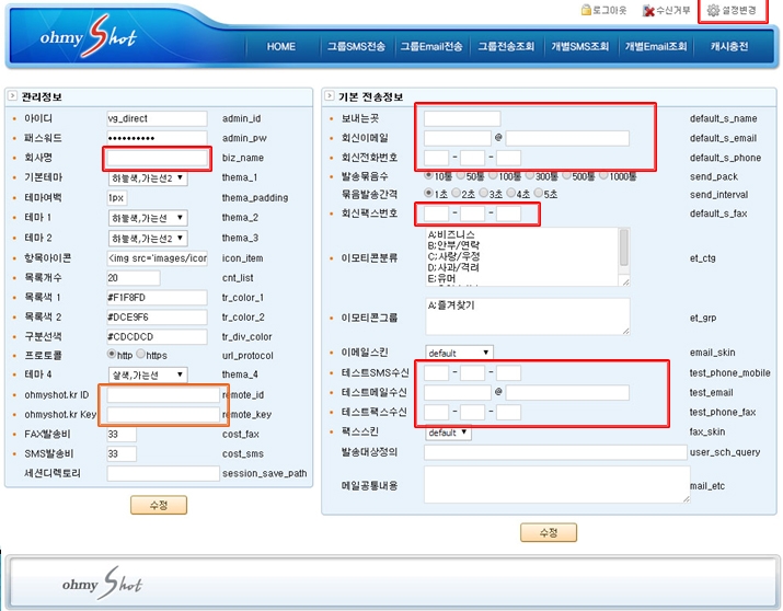 오마이샷을 사용하기 전에 꼭!! 설정변경에 있는 기본 전송정보와 회사명을 변경해주셔야 합니다.
