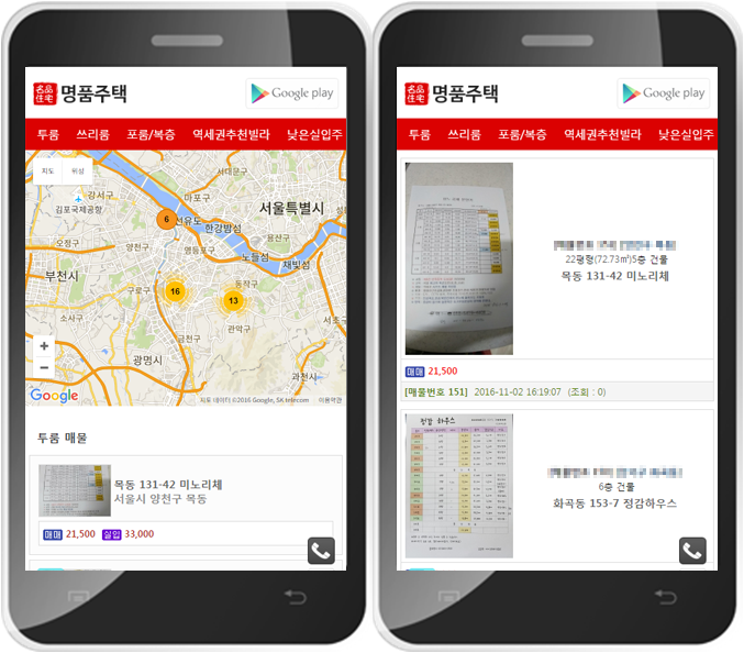 부동산매물들을 한눈에 바로 찾기쉬운 레이아웃으로 구성된 홈페이지를 제작하여 드렸습니다.