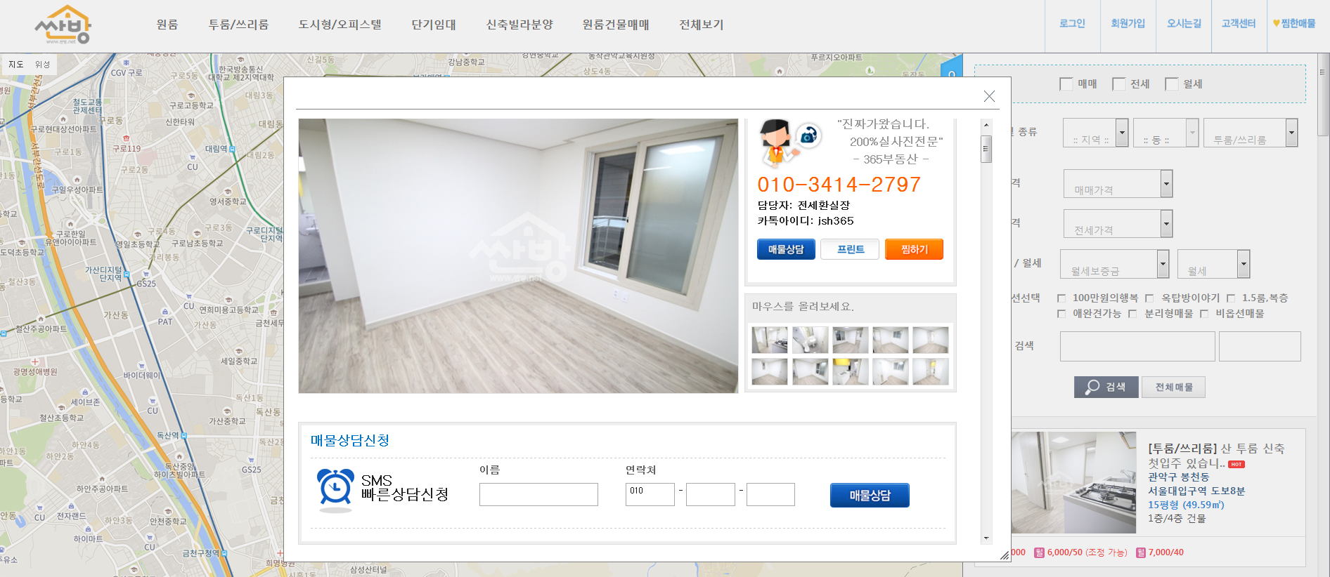 싼방 365부동산 통합검색!! 관악구 전지역의 매물들을 쉽고, 빠르고, 간편하게 ^^