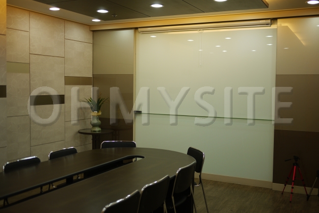 제 1 회의실 바로 옆에는 제 2 회의실이 있는데, 이 곳의 특징은 바로 언제든지 프리젠테이션이 가능하도록 빔스크린이 설치되어있고 눈을 확 끄는 둥그런 회의 테이블이 있다는 점이에요.