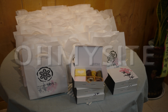 방문하여 축하해주신 손님여러분들께 감사의 의미로 나눠드렸던 맛있는 떡이에요 ㅎㅎ