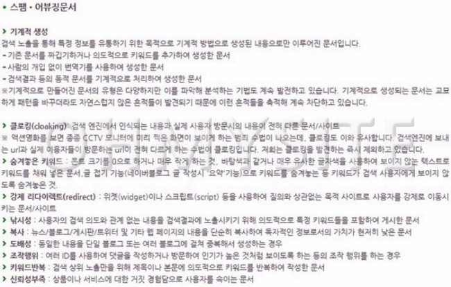 -  스팸/어뷰징문서 검열기준