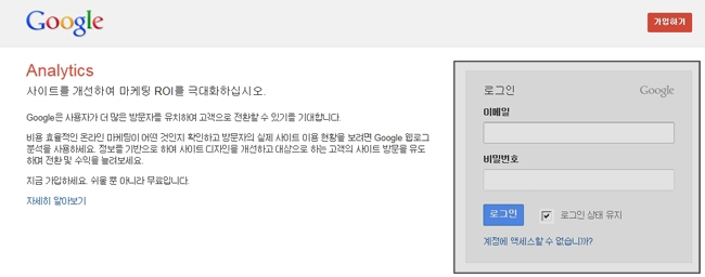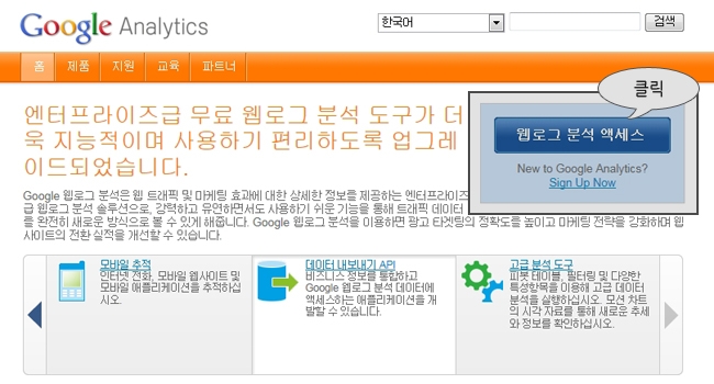 2. 웹로그분석액세스를 클릭 후 로그인을 합니다.(구글에 회원가입안되어 있으신 분은 가입해주세요.)