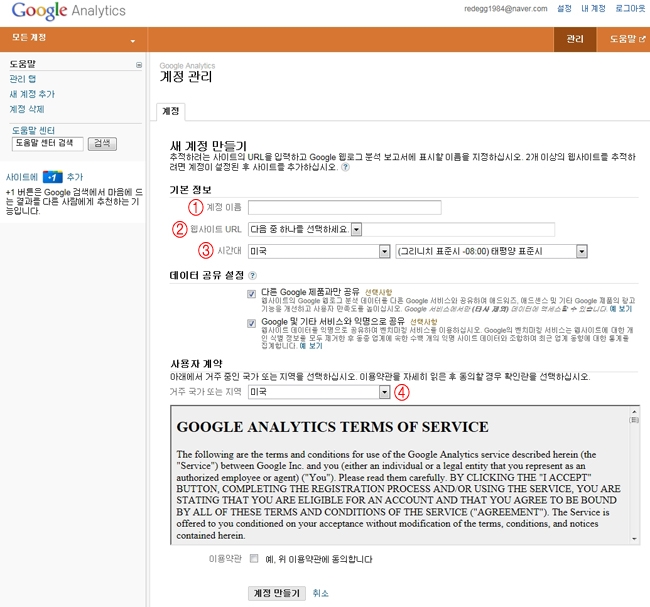 ① 계정이름: 홈페이지가 많을 경우 구분 가능하도록 해당계정의 이름을 입력