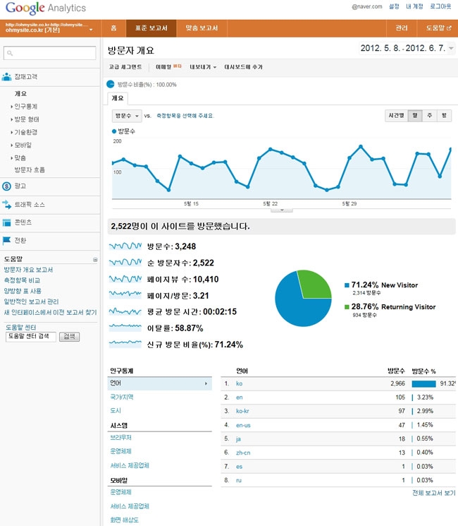 홈페이지 방문자 통계 분석 - 구글애널리틱스