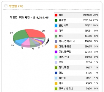 좌측의 시간가계부 챠트를 보면 경영에 투자한 시간은 고작 152시간 정도 밖에 되질 않는 군요.