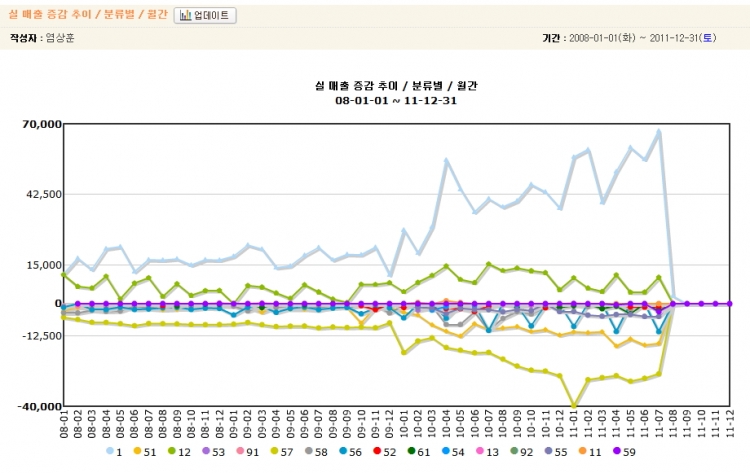 흩어져 있는 여러 데이터를 통해 의미 있는 이슈를 도출해 내는 도구로서 차트 만큼 좋은 것은 없죠? 우연히 무료 플래시 차트를 배포하는 외국의 사이트를 알게 되어 기존의 내부 데이터들을 챠트화 시킬 수 있게 되었습니다.(아껴야 잘 살죠~ 그 외국 사이트는 아래쪽에 소개 하였습니다.)