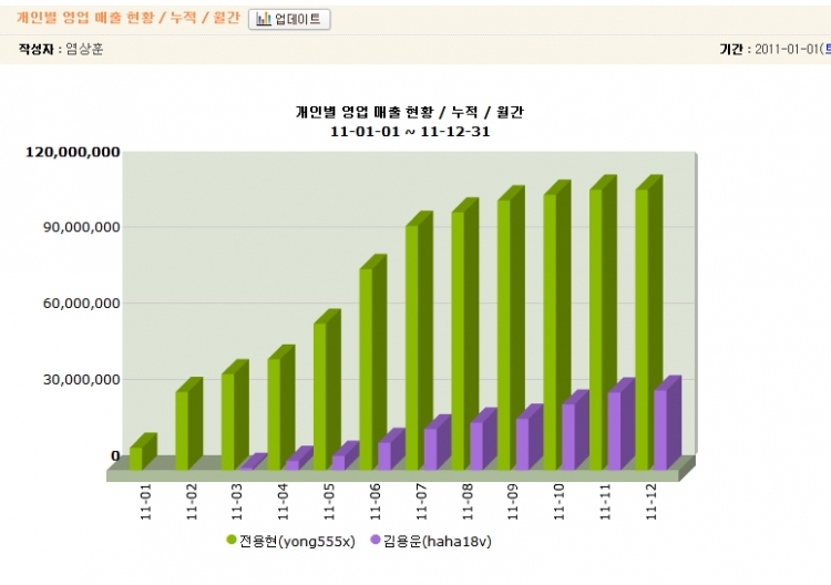 < 영업담당자들의 매출 현황을 볼 수 있는 차트 >