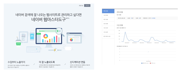네이버는 독립사이트의 컨텐츠(웹문서)의 수집과 관리를 위해 웹마스터도구를 제공하고 있습니다.
