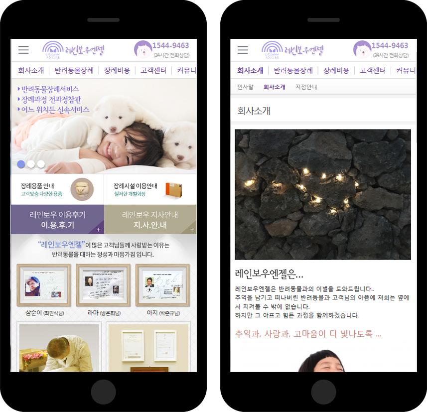 레인보우엔젤 반려동물 장례전문 기업 홈페이지 제작이 완료 되었습니다.