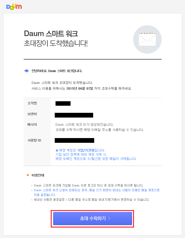 "DAUM 스마트 워크"는 사용하고 계신 도메인으로