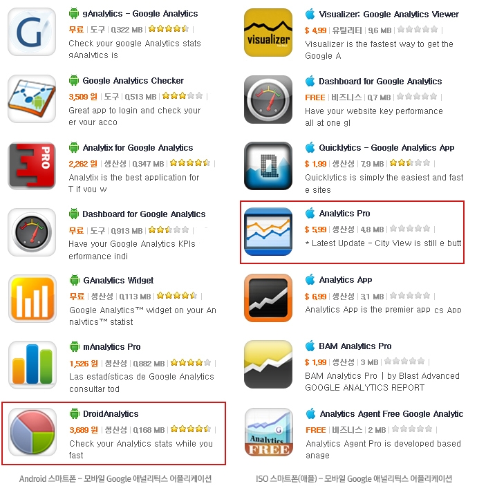 안드로이드 기반 스마트폰에서는 '드로이드 애널리틱스(Droid Analylics)'와